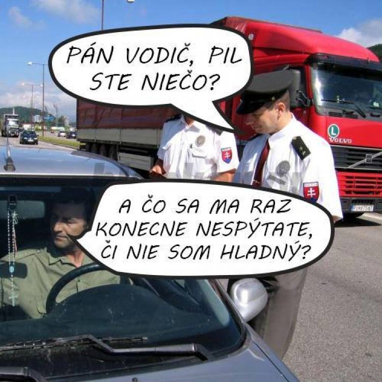 Policajt pride k autonehode a pyta sa ucastnikov co sa stalo. Mlada vodicka ktora este ani nestihla vystupit z auta mu vravi: