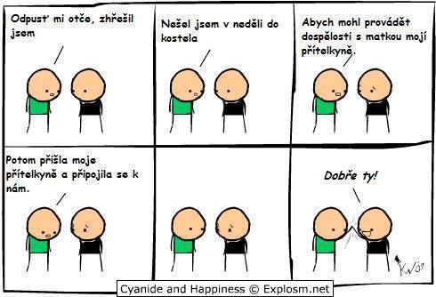 „Já vím. To já jen až přijdu do nebe, abych se tam domluvil.“