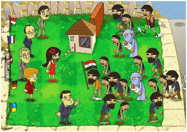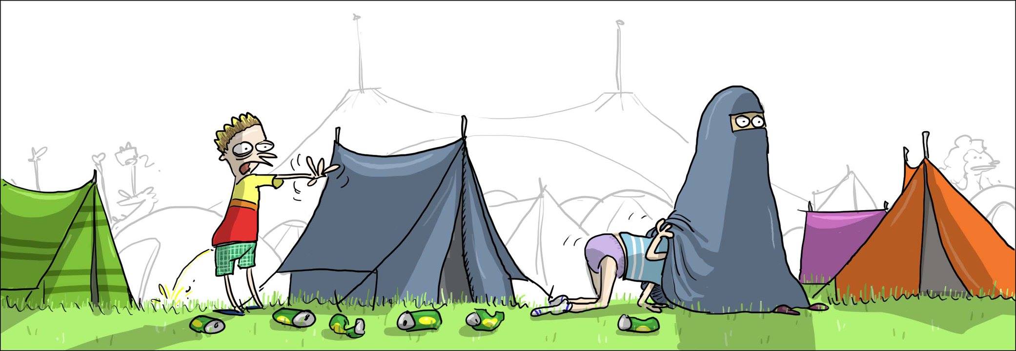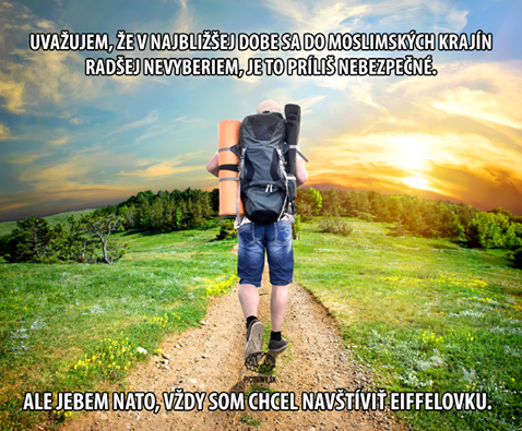 Dvě muslimky si prohlížejí fotoalbum: „Podívej, to je náš malý Achmed. Ten vyrostl, co? Za chvíli vyrazí se svou první bombou na zádech.“