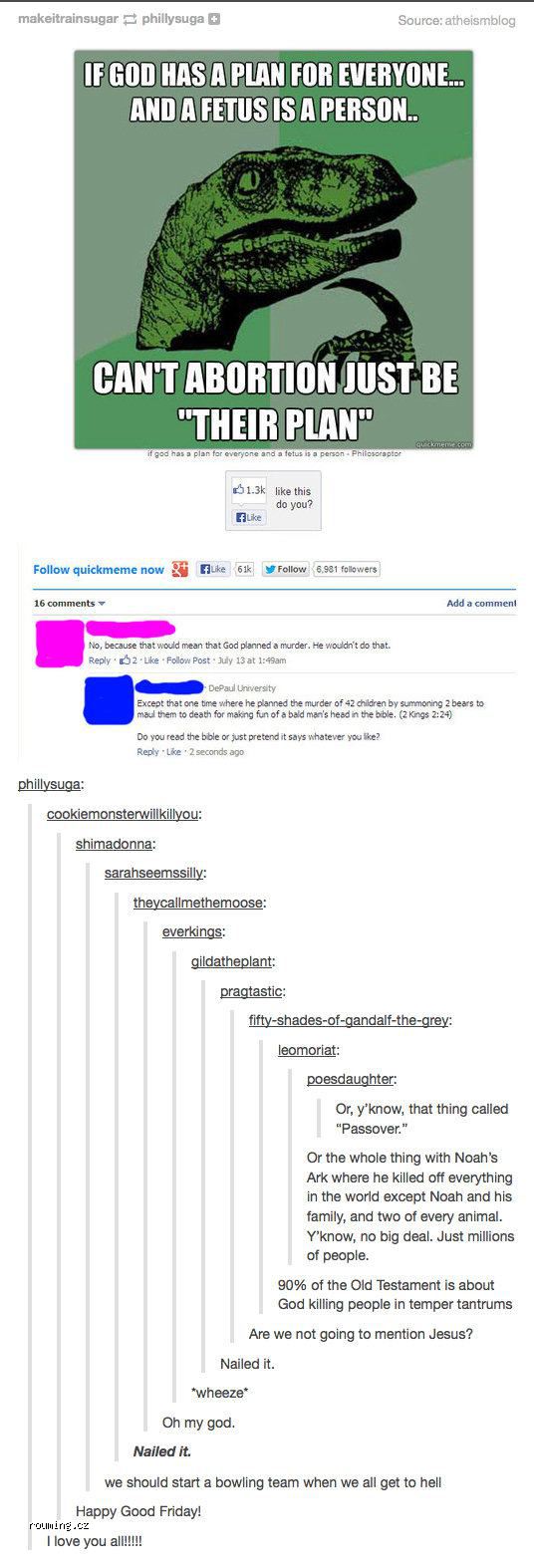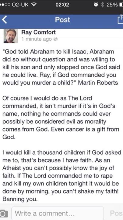 víra je jako penis. Je skvělé že ho máte a čím větší je, tím lépe. Ale neměli byste jej ukazovat na veřejnosti a už vůbec ne cpát do dětí.