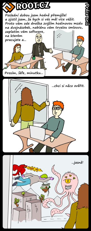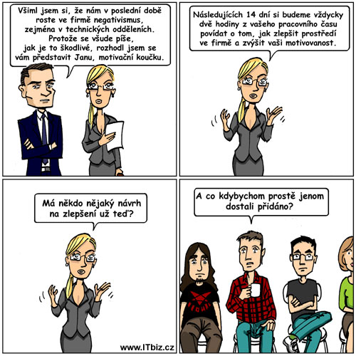 – Pozrite na tohto mladíka, pred pol rokom maturoval, za mesiac robil vedúceho oddelenia a teraz mi robí námestníka, takú skvelú kariéru za tak krátku dobu! Mám pravdu mladý muž?